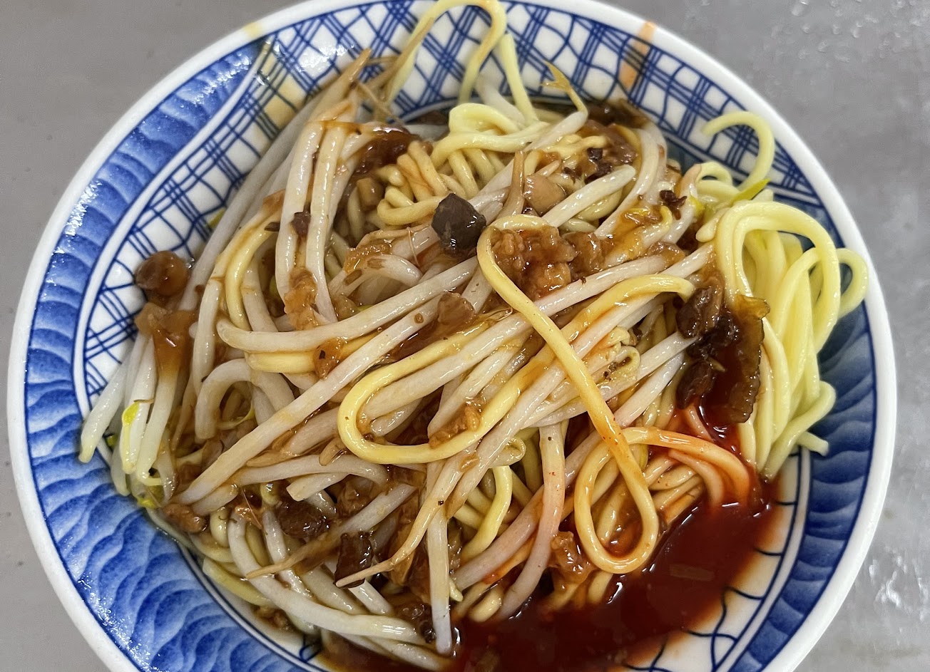 不得說麵很厲害,他是用燙的,不是炒,但是麵很Q彈不會軟爛,配上滷醬不會太鹹,加一點東泉是另一種味道,可以單點豆芽菜補充蔬菜。有乾的水晶餃可以單點,一份四顆,好吃!
