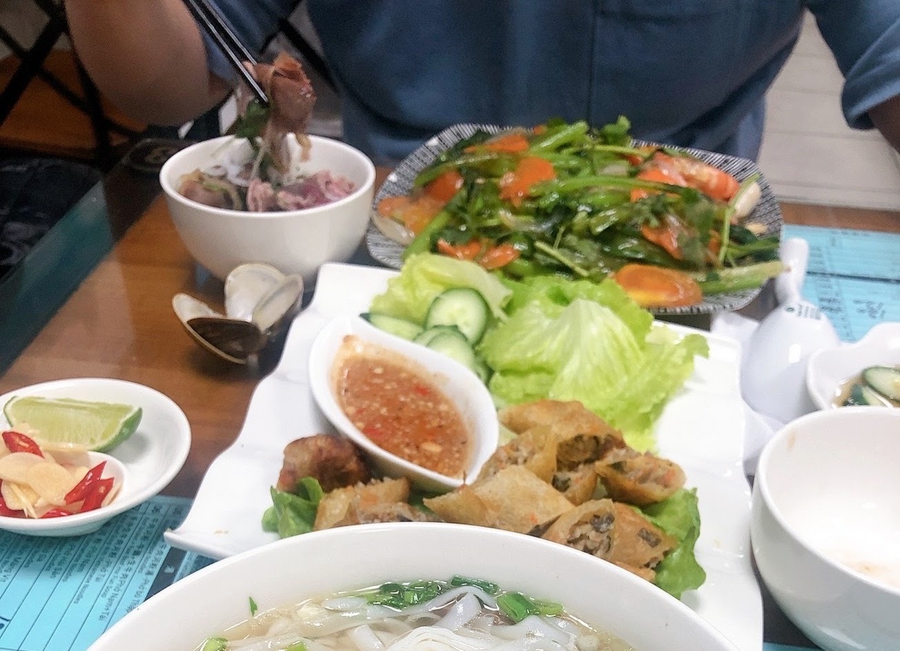 入座後發現桌上有蟑螂,衛生環境真的如評論說的不太好,但是餐後店家會噴酒精擦桌子。河粉味道普通,炸春捲及高麗菜絲很好吃。越南小吃很多,這家不會回訪。