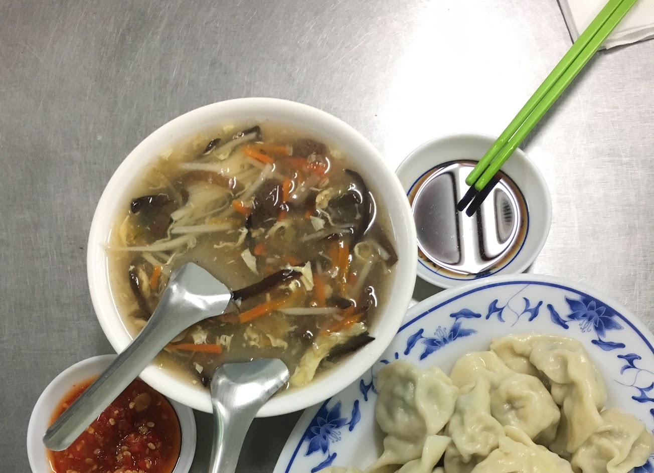 只有賣水餃跟酸辣湯,酸辣湯用白胡椒提味有點辣。