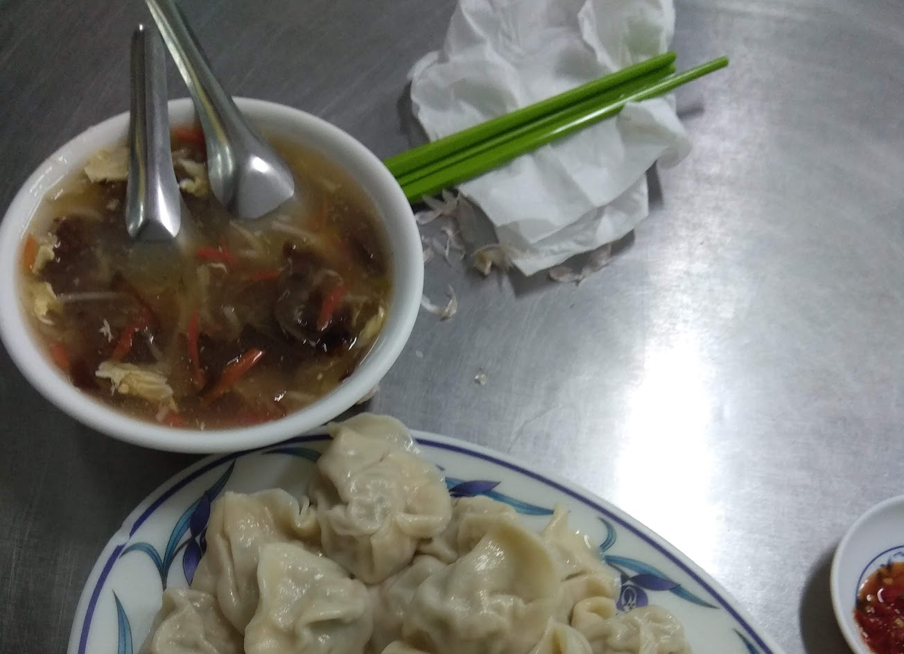 傳統水餃店,只賣水餃與酸辣湯,飽滿紮實的水餃內用提供蒜頭可以自己剝,這才是真正專業水餃店阿!