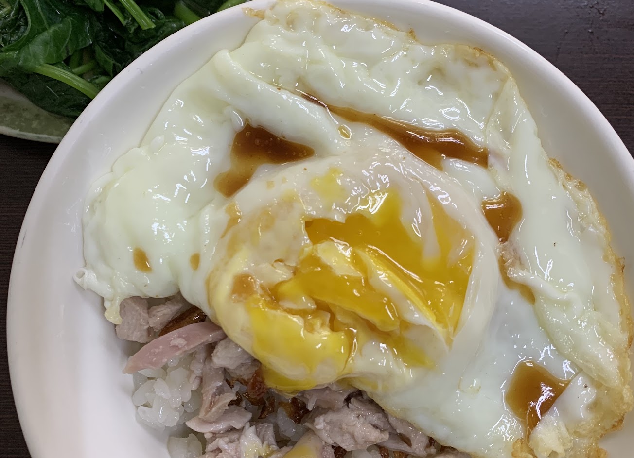 其實在來嚐鮮之前,我本身對於火雞肉是有點畏懼的,因為曾經吃過處理不好的火雞肉飯,有著濃濃的羶味。但這次卻完全顛覆我的印象,肉片軟嫩,雞油混著油蔥的香氣,沒兩下就差點見底,差點忘餓了我點了荷包蛋要來搭配著吃。但,不搭還好,一搭上去,突然又感覺是不同的一碗飯,突然認真地體會到何謂銷魂!