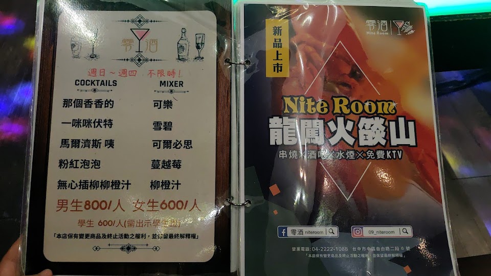 零酒NiteRoom|免費KTV|水煙Shisha Bar|海鮮串燒|酒吧Bar|臺中KTV水煙串燒酒吧推薦