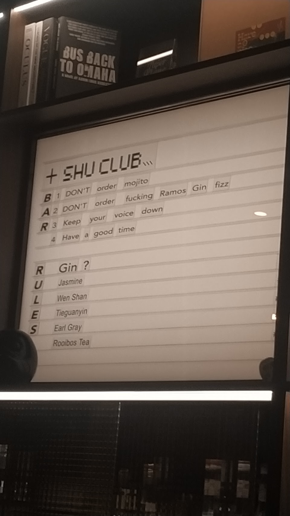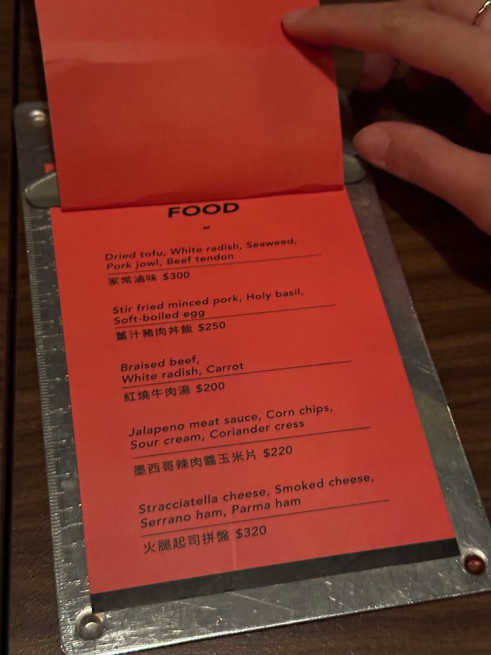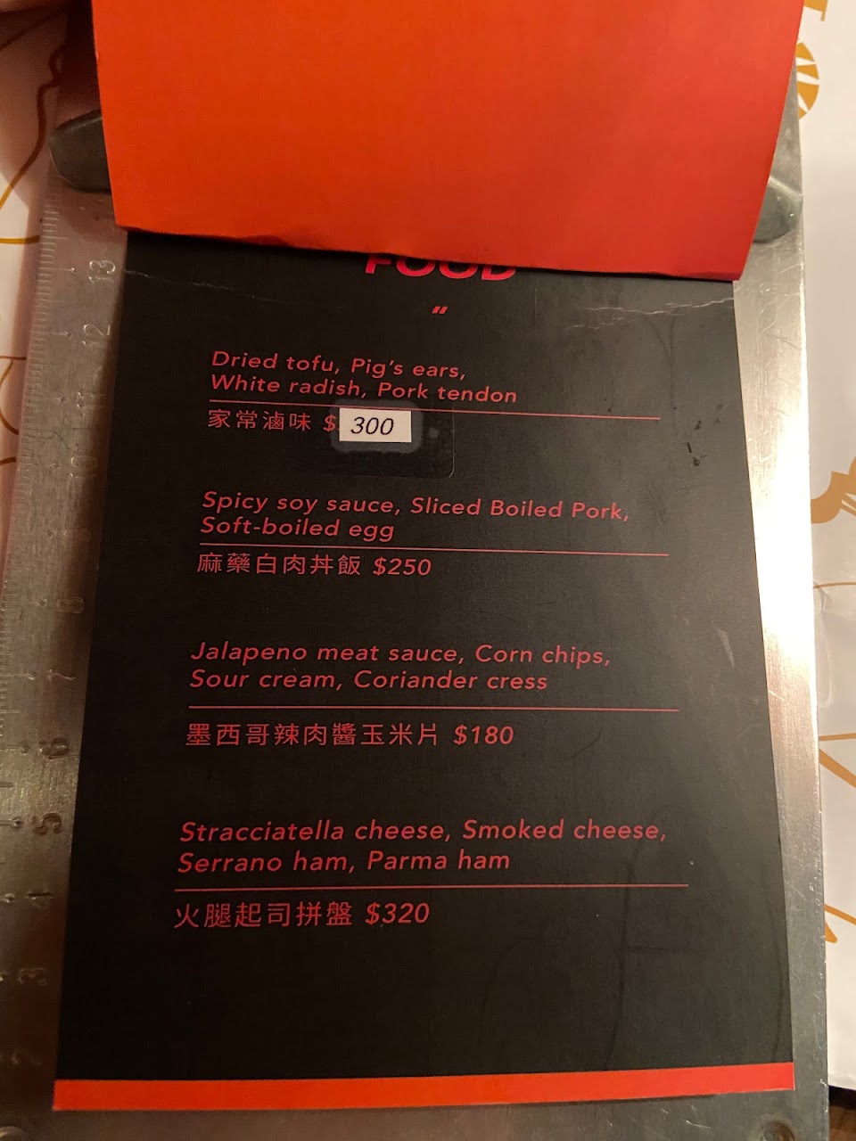 幾乎看不到菜單 只能從檯燈微弱的燈光中看到字體?