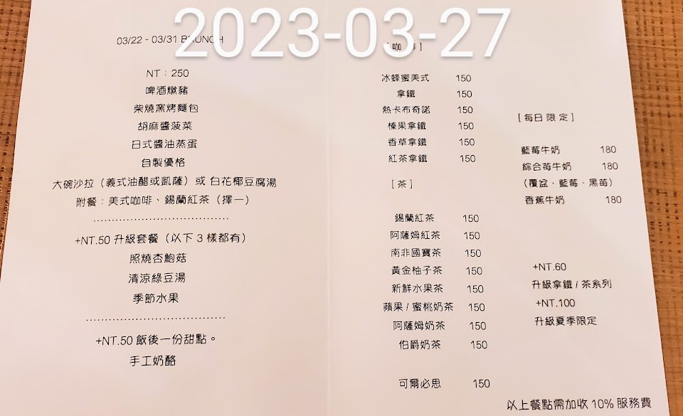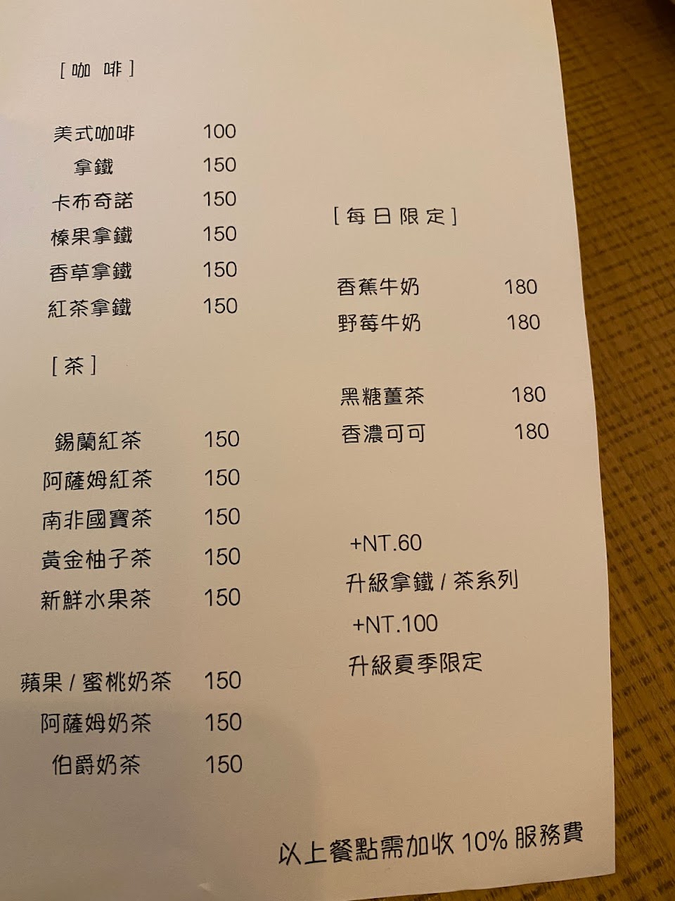 這是一間不用煩惱點餐的餐廳,菜色只有1種,每10天換菜色,飲料加60-100元更換為菜單右邊飲料,簡單明瞭。