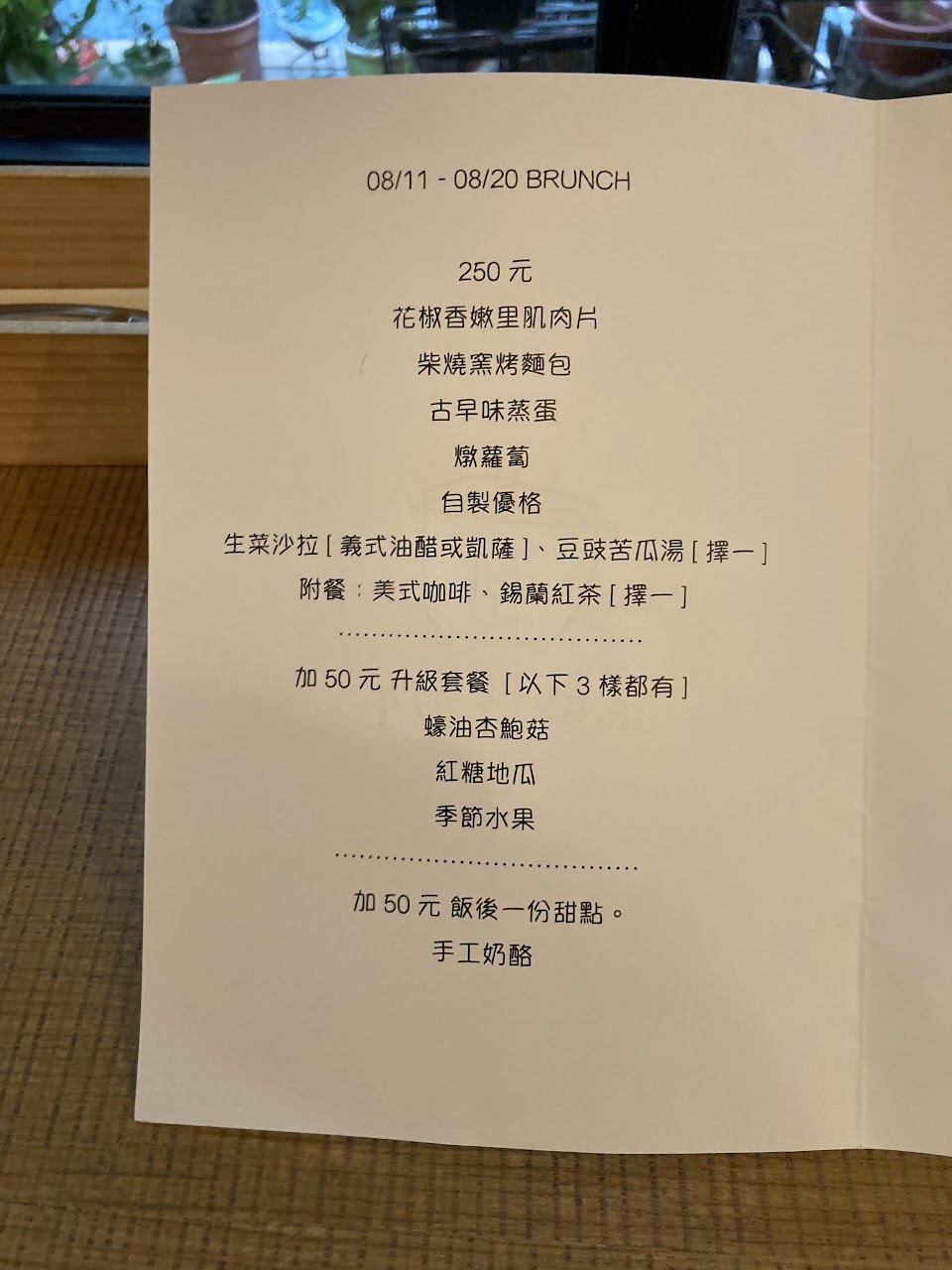 蠻特別的地方,十天換一次菜單,不需要煩惱去選擇要吃什麼,加$70有四樣附餐,東西份量都不大,可能有些人會覺得份量稍小,服務的人員非常熱心,在使用Line Pay的時候有困難,店員非常熱心的幫我解決了問題,洗手間也很寬敞乾淨,很適合吃飯聊天的地方,聽說他的麵包也很有名,需要預先訂才有,因為是窯烤麵包而且是從宜蘭做好送過來的,所以現場沒有辦法買。
