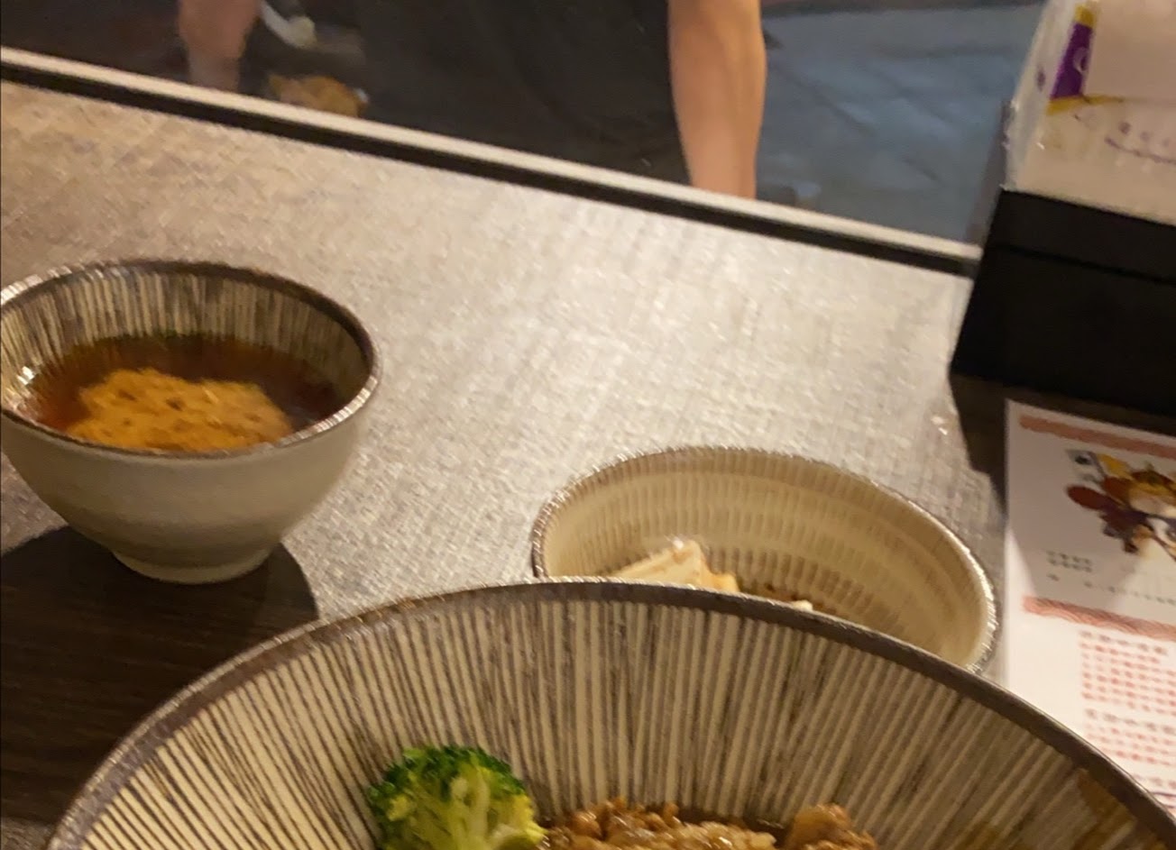 咖哩是比較少吃到的口味~也不錯吃~感覺比較像肉燥式的咖哩~炸蝦可以試試哦?會送湯和小菜(好像有更換~今天是豆腐)而米飯是粒粒分明~剛開始吃會覺得偏硬點點~服務員都很親切~而裡面的坐位只有七個位置~內用有得等哦!不知道有沒有限時~只是碰到了~慢慢吃?慢慢聊?慢慢滑手機的客人~就會很想翻白眼??