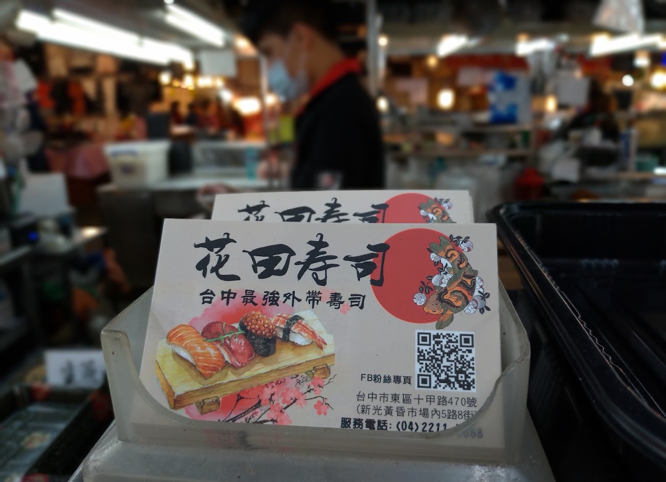 黃昏市場不好找地標,但搜尋花田壽司一定ok!如果剛好身上沒帶很多錢,但又嘴饞這裡真的可以讓你吃到平價又美味的道地日本壽司,不過買一買也要兩三百,呵呵跟家人朋友一起共享吧!推薦的市場美食。