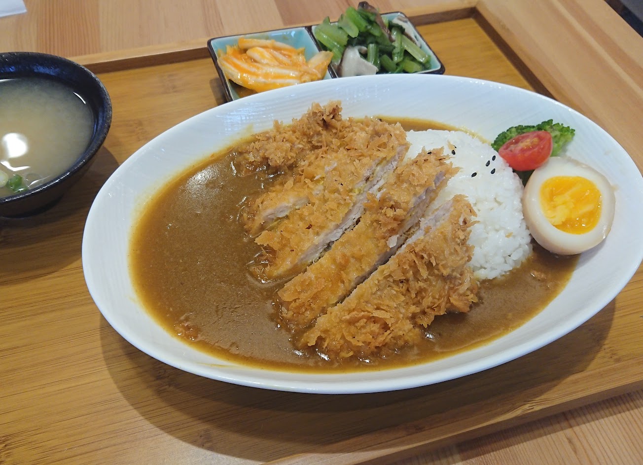 點了咖哩豬排,豬排炸的水準不錯,但咖哩普通,部分白飯軟爛。配菜調味有小巧思,以這價位算不錯了。