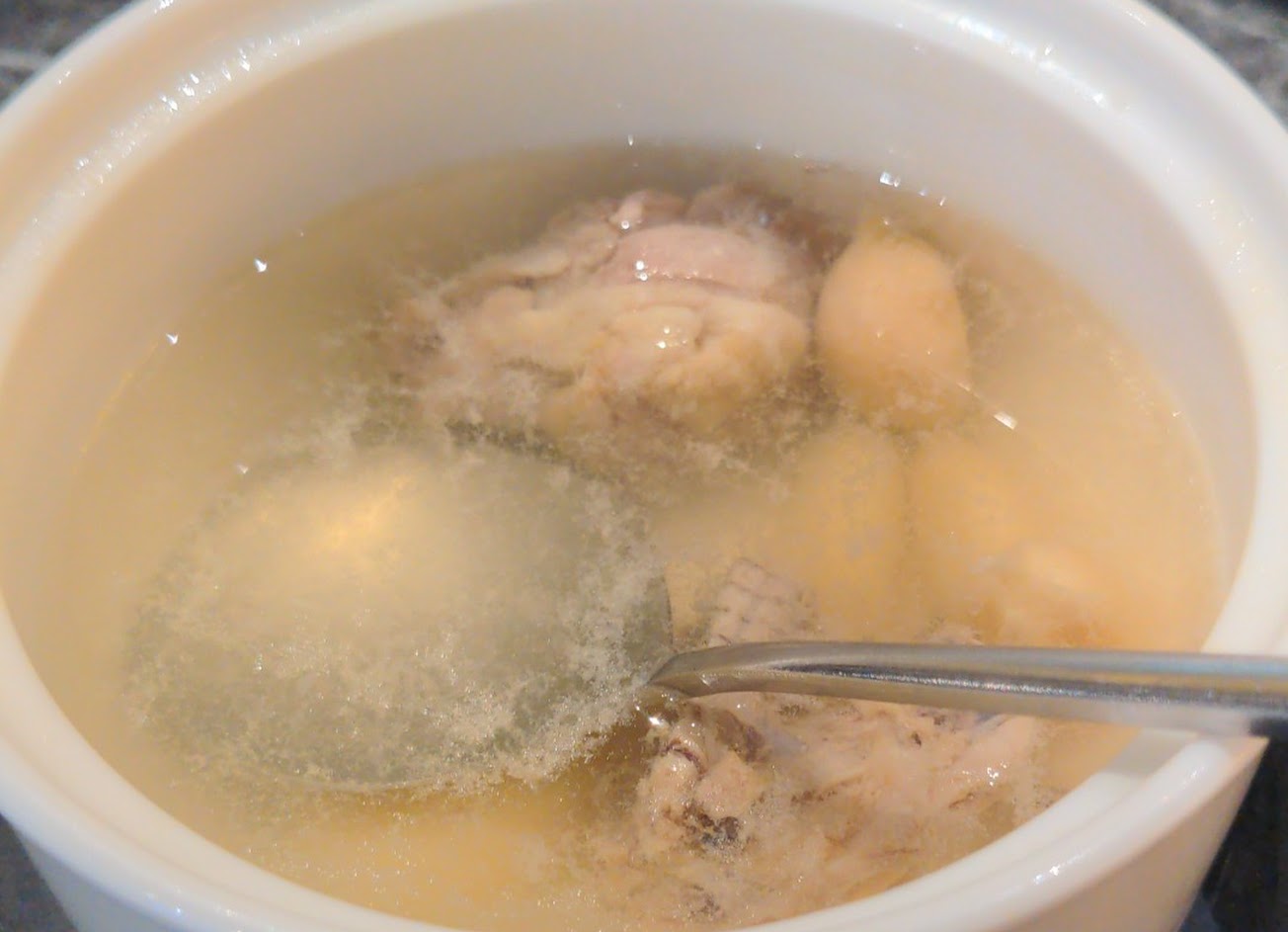 湯味道好喝、雞肉柴、蒜頭沒什麼味道