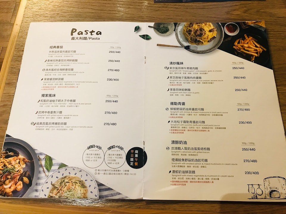 義大麪條,軟硬適中,醬汁入味。 #焗烤千層麪,麪條加肉醬及馬鈴薯,加入起司焗烤,口感豊富,又充滿饱足感。 #茄汁地中海海鮮義大利麪,蝦子、花枝、淡莱、蛤蜊新鲜份量足。 #青醬海鮮義大利麵,滿滿海鮮,口味可。 #麪條份量100gm/200gm兩種選擇。 #商業午餐,加NT$80元或NT$150元,有湯、沙拉、麪包、餐後甜點、咖啡或红茶擇一。 披蕯也不錯。 用餐環境舒適,場地可容納160人。约會、公司聚會、家庭用餐都適合。 旁邊市立停車場便宜又方便。