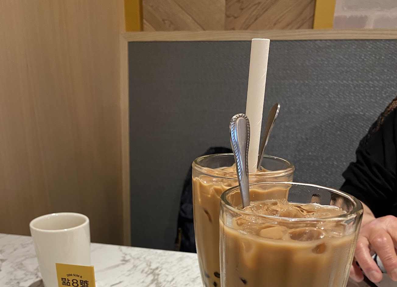在菜單上畫記了推車蒸籠的品項,店員告知可以不用畫,等下會有推車隨桌服務,但他還是先幫我送上桌了 ※酸菜麻辣腸很有味,但酸菜只有一點點點,辣味還好 ※經典魚翅餃味道一般般沒有明顯印象 ※港式奶茶(凍)冰塊頗多,味道偏甜所以茶澀味不明顯了 ※腐皮鮮蝦捲不是印象中長方型對切的型狀,像是春捲縮小版,味道不錯 ※老火鴨香粥約過了半小時後才上桌,不是熱燙燙需要吹好幾下才能入口的溫度,鴨肉約三、四小塊,給的花生油條可以再多一點喔 ——————————————————- 2021年1月再訪 換點了熱奶茶,上桌沒附糖包,一喝就覺得好甜,倒了桌上的普洱茶來沖淡甜味 菜單多附了一張肉品產地標示 這次點粥的上餐速度比上次快多了