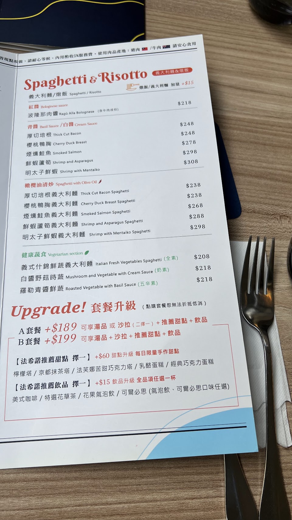 二訪法希諾❤️這次帶著我媽來 想念他們的義大利麵☺️ 這次有新的全天供應早午餐 我媽媽點了帶骨香腸 好好吃 鴨胸義大利麵的鴨胸超級嫩~~ 義大利麵也很好吃?