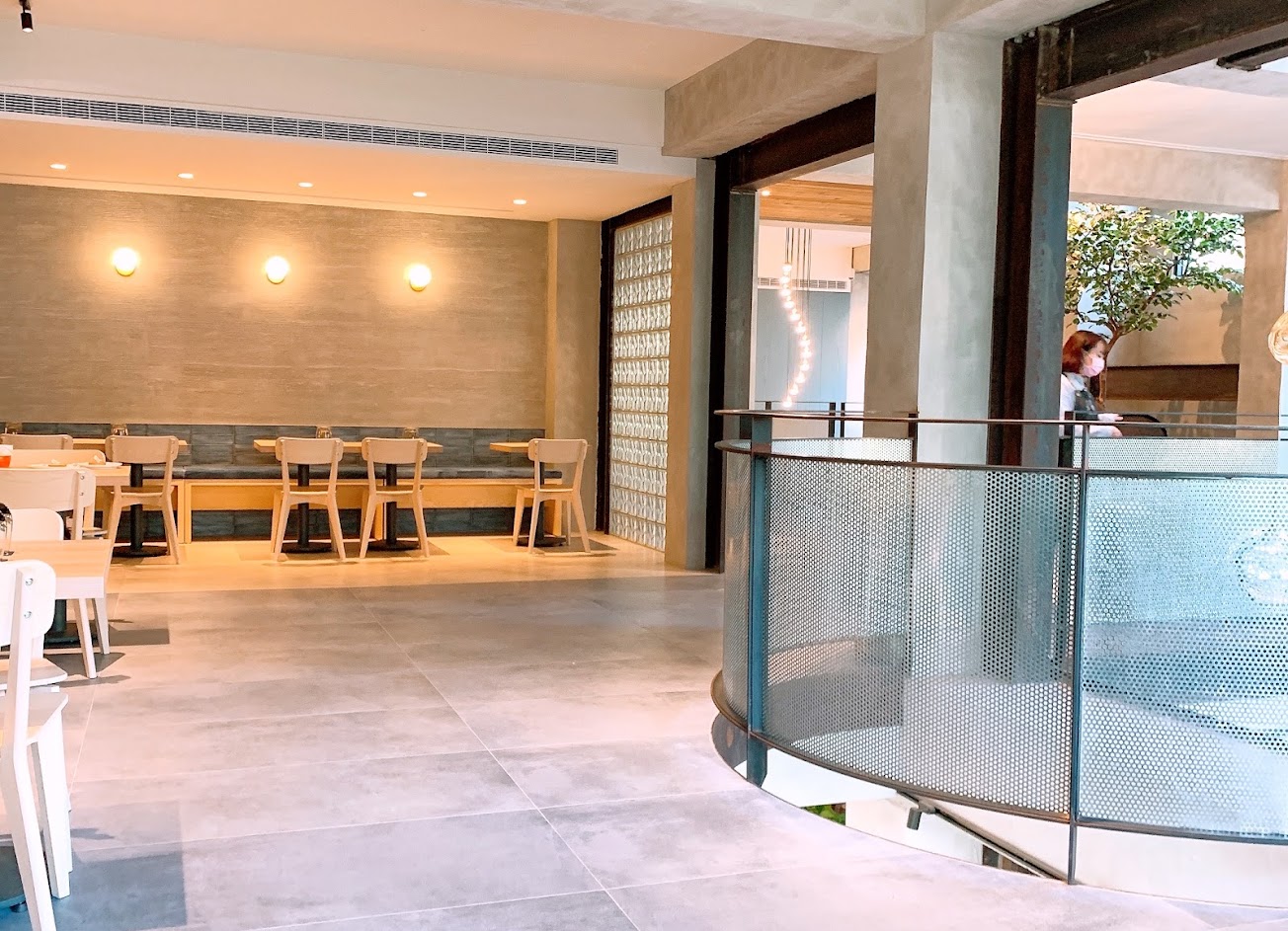 在偌大的坪數裡,挑高的空間,不會擺滿滿的桌椅,保持一定的桌距。搭上輕鬆的音樂歌曲,讓人沈浸在老宅氛圍裡放鬆身心。