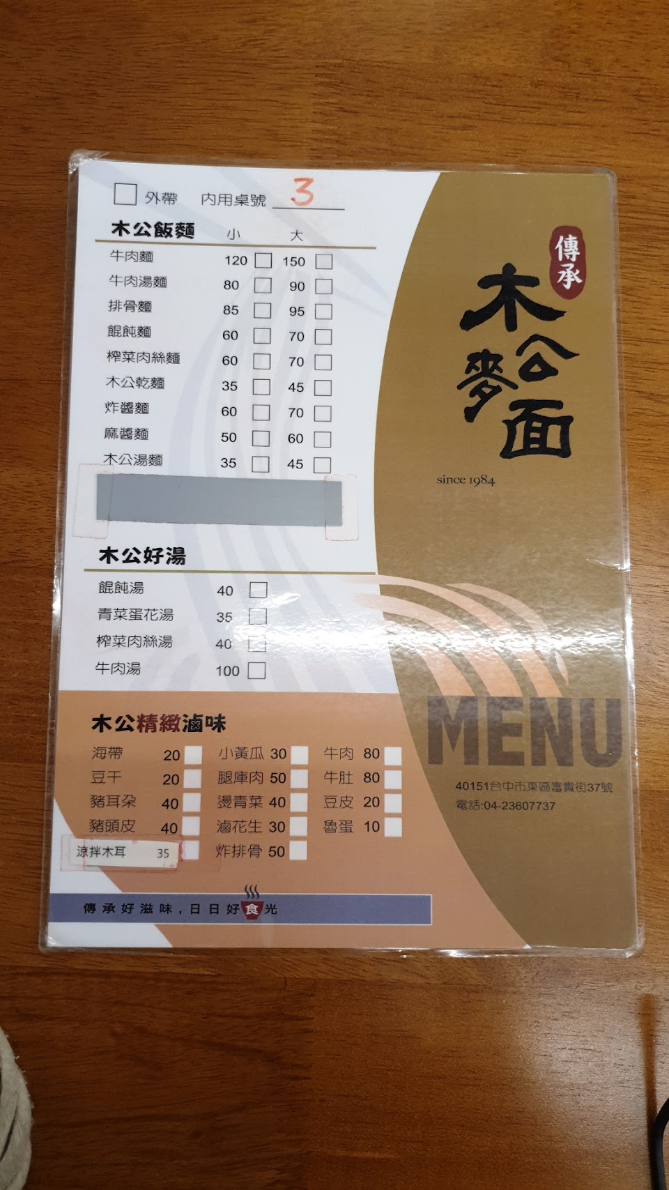 木公麥面只賣多種麵食跟滷菜,文青的裝潢環境乾淨舒適,雖一星期只營業2天卻足以讓饕客大排長龍。