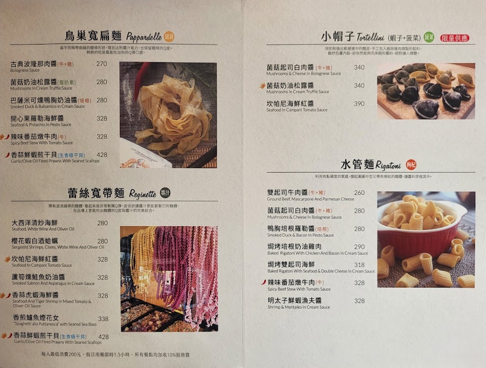 特色是各種類麵條,用料實在、味道相當有層次、擺盤精緻,醬汁偏稠,有些人可能會吃不習慣。