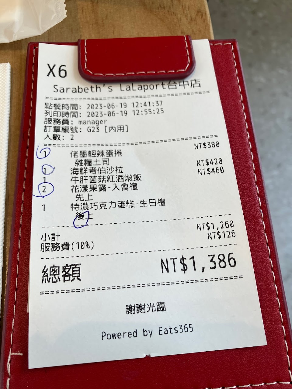 簡單吃個幾樣,味道很好但價格偏貴,在lalaport裡算是一流餐廳,但個人會比較偏好台中其他家餐酒館。