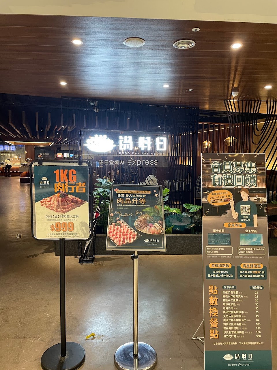 台中大魯閣新時代11樓有四家鍋物,鍋好日是價位最低,CP值很高的餐廳, 座位大多為四人桌,前後都有木板條隔開,擁有私人的空間,採區單點套餐方式,沙拉吧吃到飽的方式,也有火烤兩吃,加入官方Line打85折,平日午餐228就可以吃到飽,雖然肉盤只有一盤,但是沙拉吧蔬菜種類眾多,熟食區也有滷肉飯、炒麵、麻油米血糕、炸雞塊和地瓜球等,冰淇淋還有兩種品牌(美吉和台中本地品牌)可以做選擇,飲料區選擇也算多樣,湯底除了昆布鍋外,加價也可以點不同口味的湯底(麻辣、白菌菇、剝皮辣椒等)服務親切、餐廳氣氛佳,衛生也很不錯,蠻推的哦