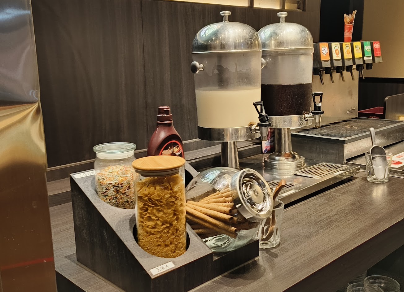 先說湯底吧,特製湯,我完全喝不出熬久的甜味,對於我來說,這湯非常的淡,一個湯底沒對胃口,我想應該輸一半了;自助區,熟食跟甜點以及飲料,我可能去韓式燒烤豬隊友,除了甜點,應該就完敗你了;咖哩飯,嗯…其實我只吃一口,沒特別的感覺,但沒想吃第二口;肉的部分,兩個人吃7盤,也不想點了,蔬菜的部分很好,很多樣,其他的就也沒什麼好講了,喔,服務生態度不錯,只是位置太小,麻煩多勤勞點幫收空盤,不然我要放地上了;一顆星給服務生跟裝潢,我真的吃不習慣你。