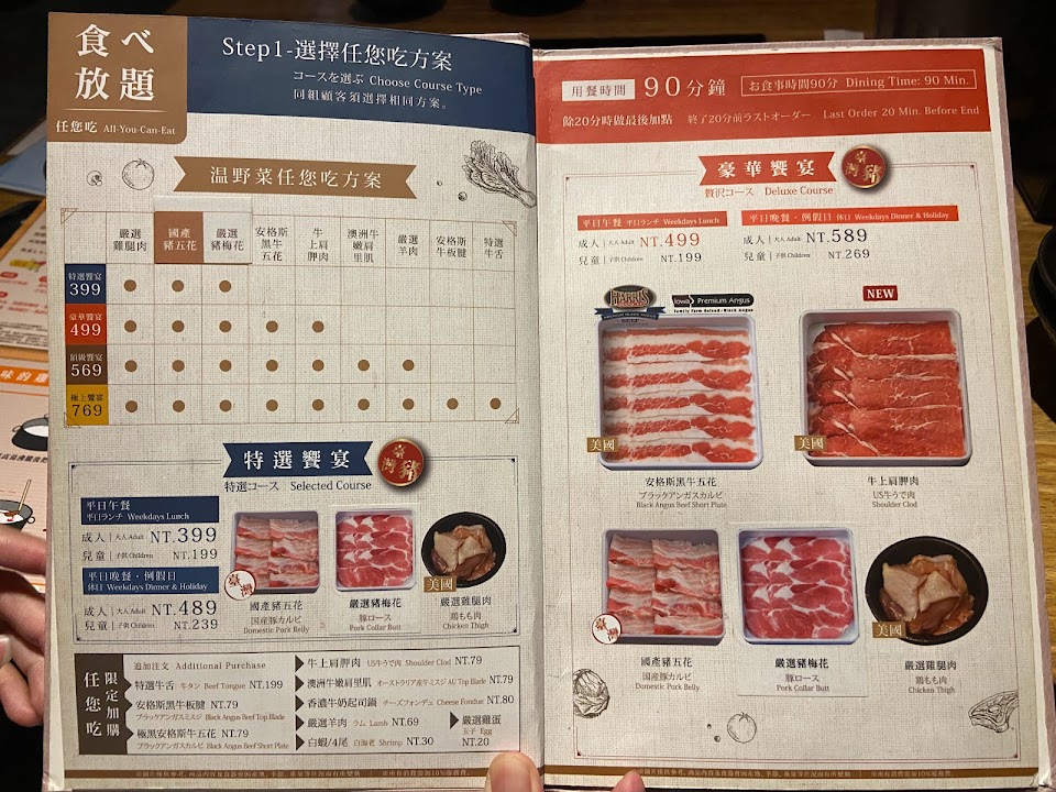 牛肉肉質新鮮,豬肉普普,用餐時間九十分,醬料沒看到醋,有的話會更好。