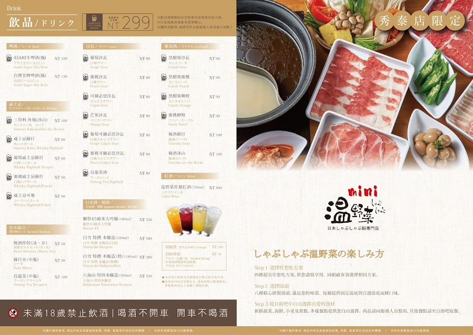 ?聽說在日本紅透半遍天,連鎖店一家一家開,日本外食補充蔬菜困難,溫野菜變成一般吃飯或聚餐的好選擇,對日本人來說,這家店是非常cp的,日商朋友說的~ 服務 內用 餐點類型 晚餐 平均每人消費金額 $600-800
