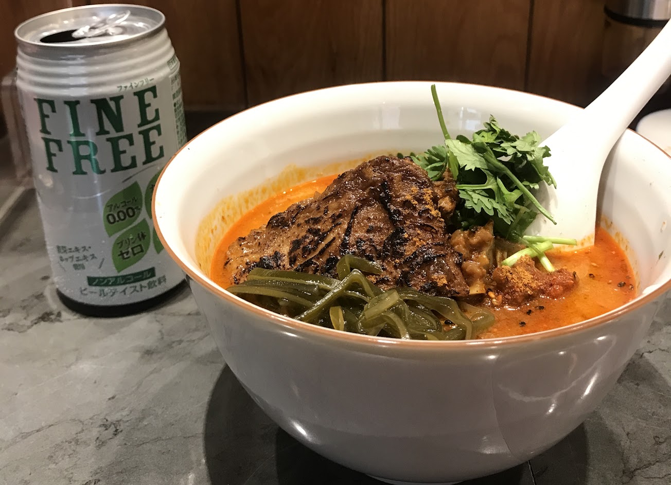 雖然排隊要這麼長令人覺得飢餓行銷有點煩,但味道是真的很不錯(對素食者來講),湯頭濃郁,麵條偏軟,湯與麵是不到特別厲害,但配料真的是吃過的素食拉麵裡最驚艷的,推薦加錢升級成特盛套餐,豆皮炙燒過非常好吃,特盛餐裡頭的假肉塊(好像叫角煮)口感也很妙,真的有點像肉,不過調味功虧一簣,豆輪味還是很濃,覺得可以滷得更好些