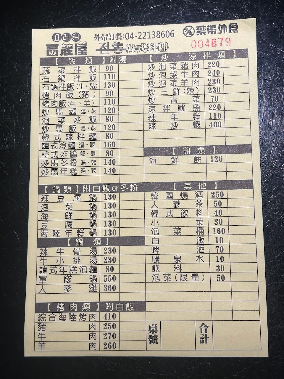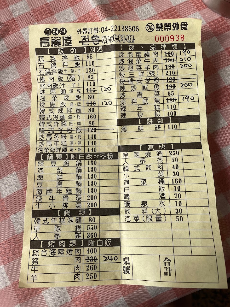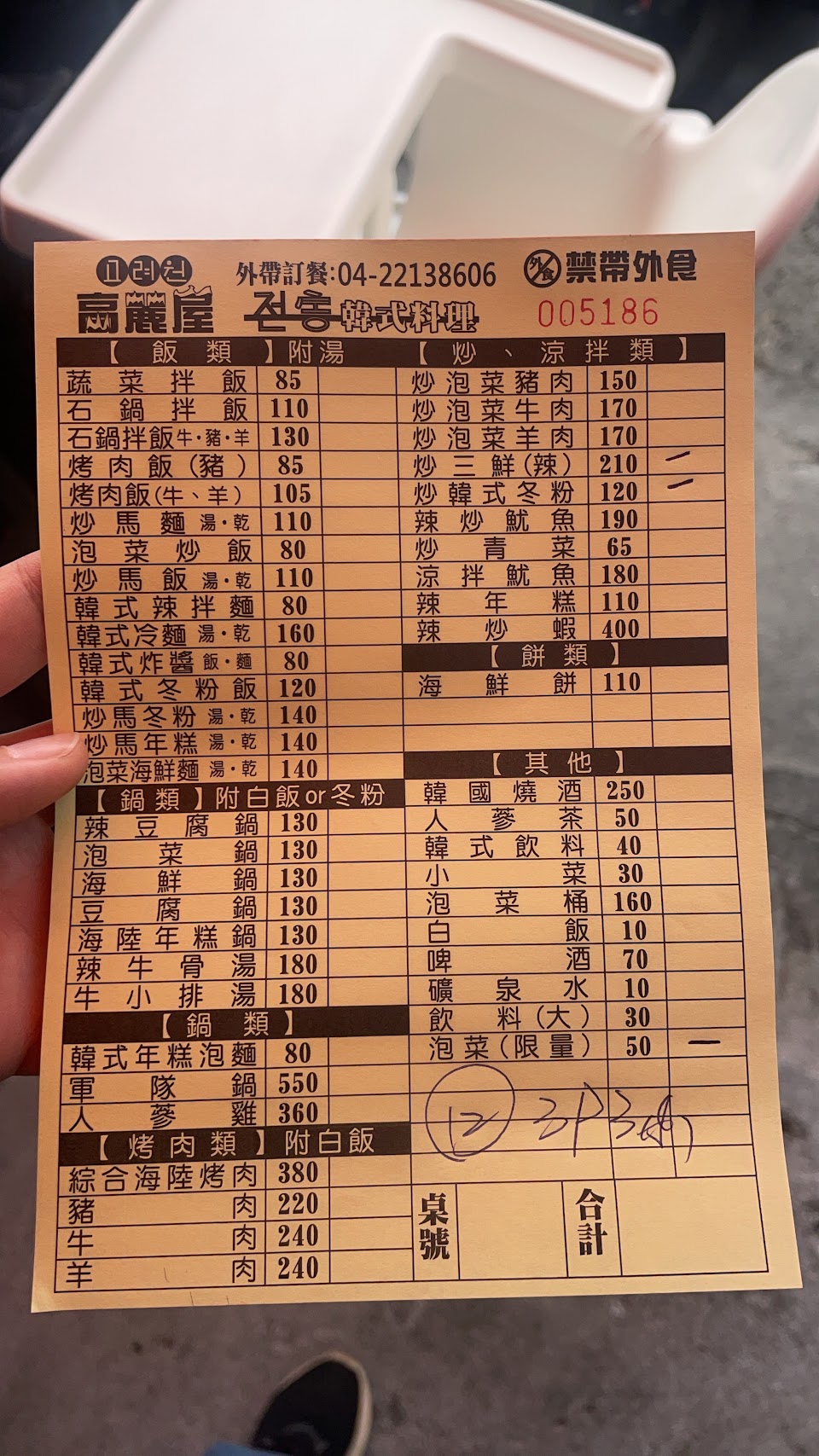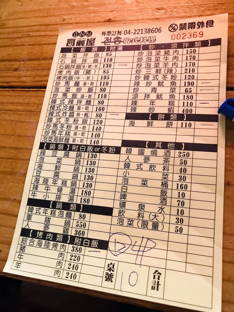 2024最新在地推薦餐廳的菜單_台中市東區高麗屋的菜單、圖片