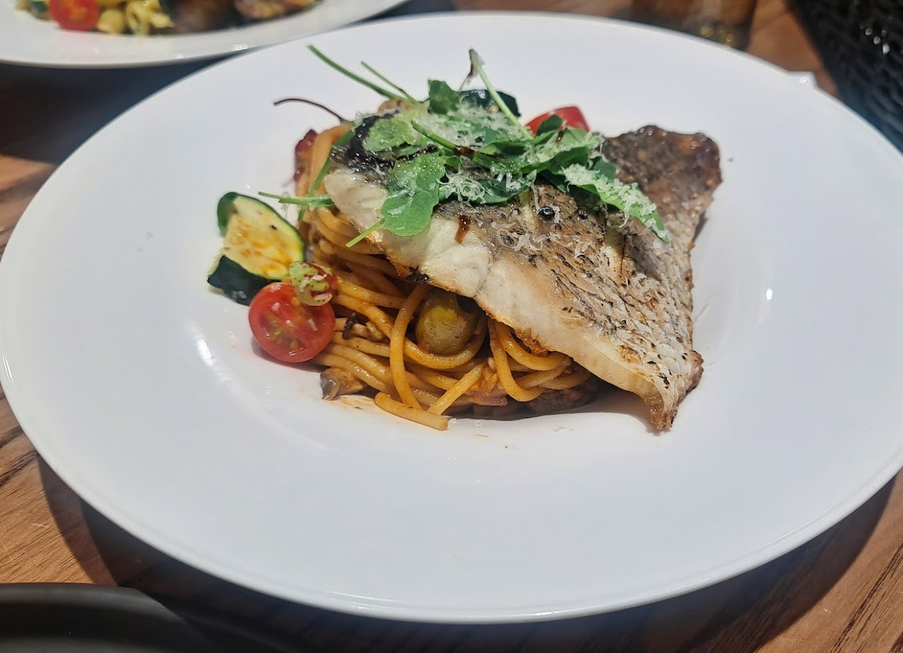 煙花女鱸魚義大利麵也很好吃,義大利麵搭配非常嫩的鱸魚肉裹著醬汁很香很好吃!