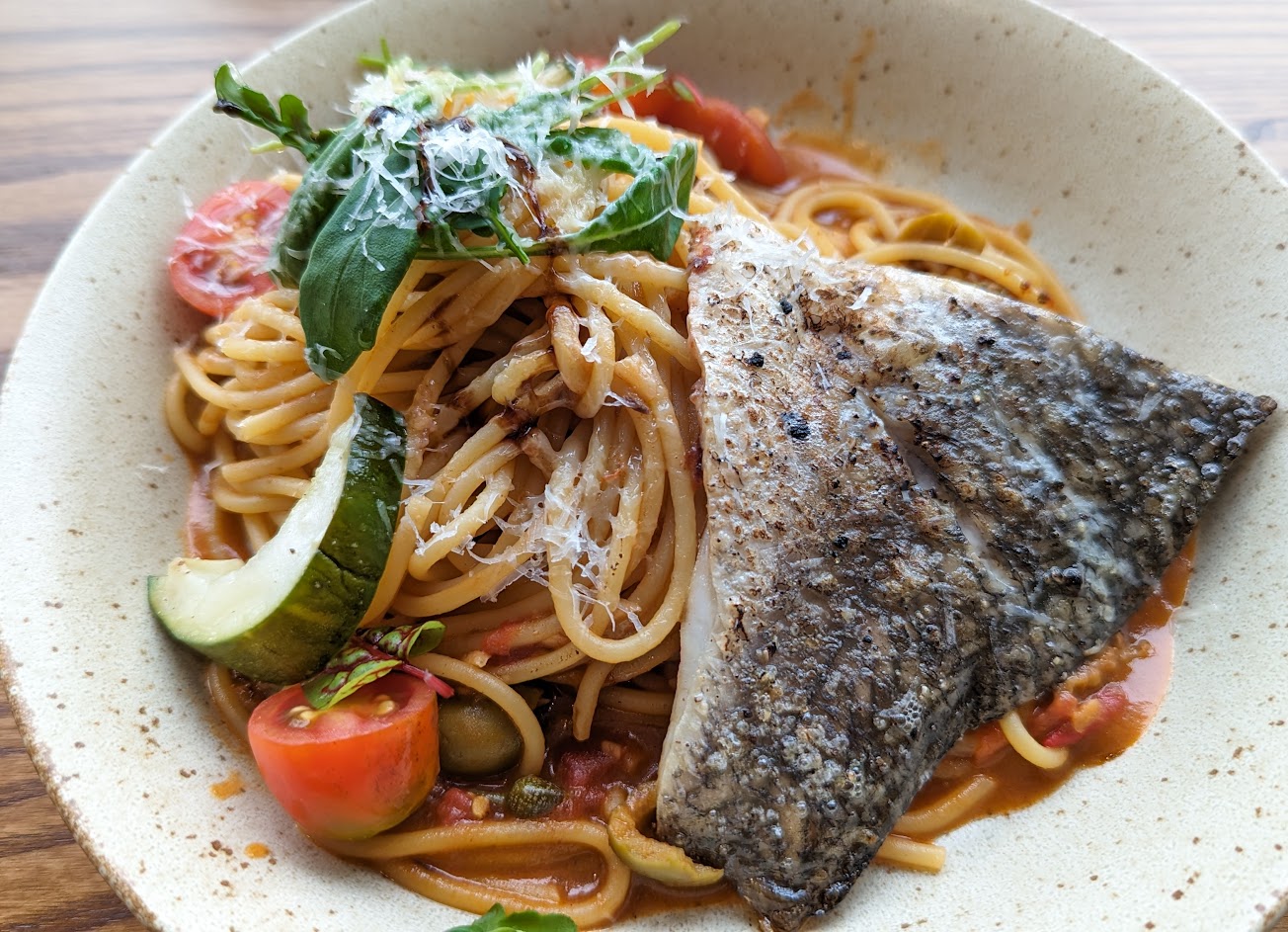 菜單與另外兩家店稍微不太一樣 今日點的主餐 分別是 1.卡布里番茄莫茲瑞拉義大利麵(蛋奶素):麵條很厲害,以素食餐而言菜色不會他單調 好吃 ? 2.煙燻鮭魚奶油蘆筍義大利麵:鮭魚肉一級棒,麵條也是恰恰好 不會太軟或太硬