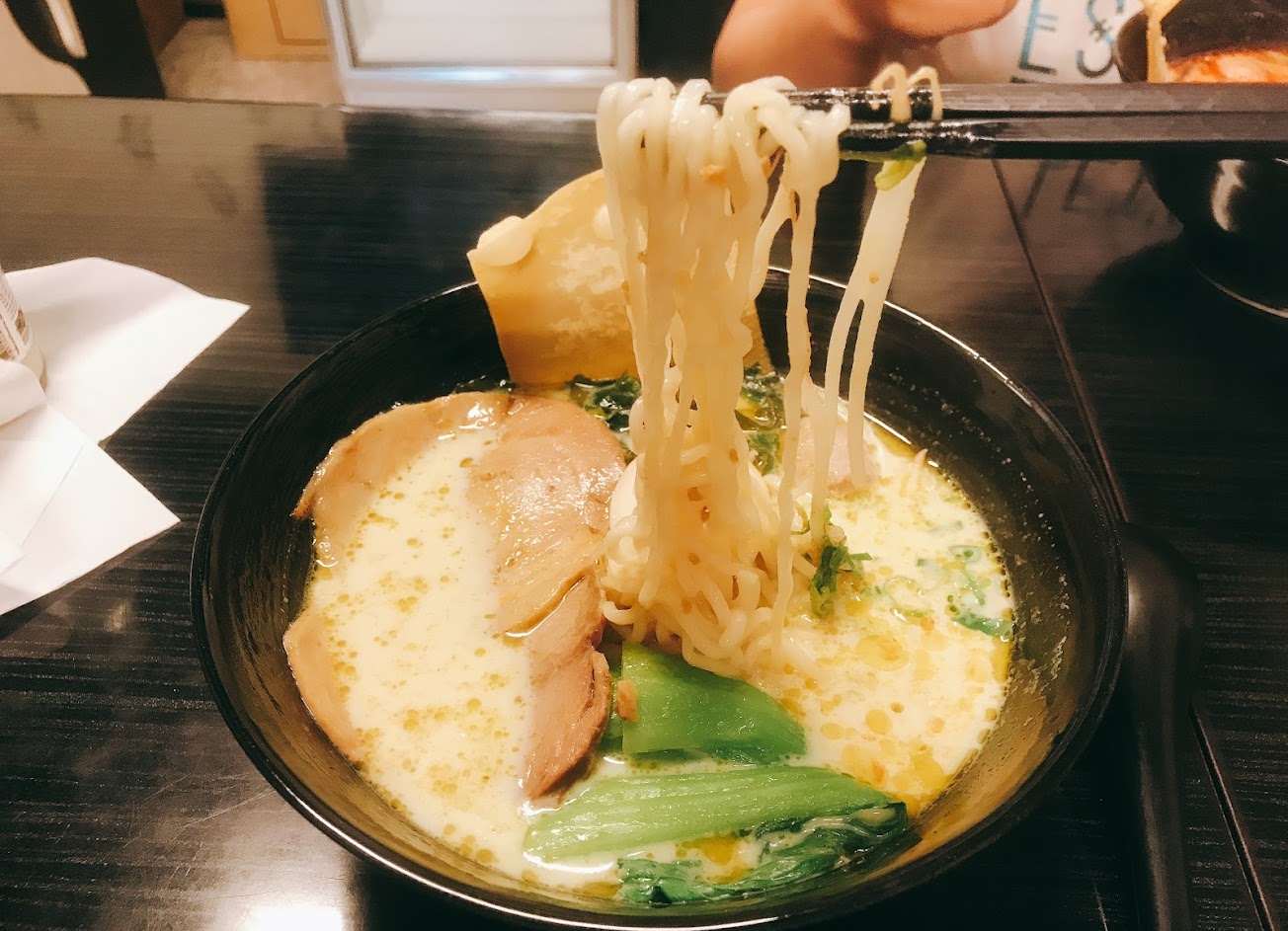第5次來了,這次帶著小孩老婆跟朋友一起吃,這邊的拉麵口味真的很棒,出餐速度也非常快速,月亮蝦餅是小份量但價格平易近人,且所有餐點都很平價,拉麵火候的部分也控制恰當,Q度適中,湯頭的部分目前都還沒有喝到不喜歡的,都好好喝! 我們目前嘗試過酸辣,綠咖喱,原味,還有乾式拉麵,平均消費價格一碗麵80-130左右,而且用料也實在,用料包含蔬菜,糖心蛋,肉,海帶或海苔,我們吃的是豬肉版本,豬肉拉麵裡面的叉燒非常軟嫩入味,湯麵還會有一片酥脆的餅乾,餅乾會吸收搭配湯頭,吸收湯汁以後的餅乾味道非常棒!這裡唯一的缺點就是,不太好停車,位子不夠多,但整體體驗感受是大推!非常值得大家來嘗試唷!