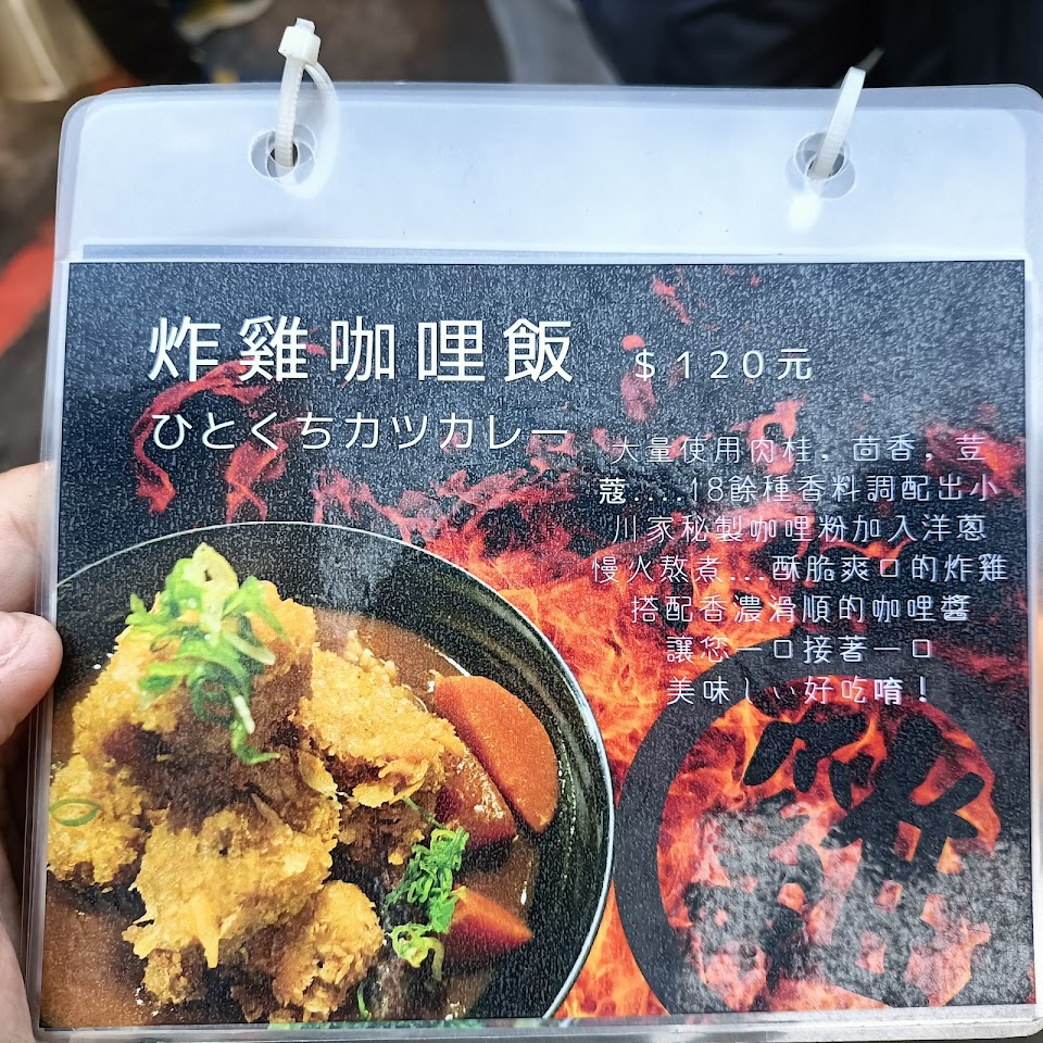 小川家是一家位於忠孝夜市裡的路邊攤,我路過2-3次永遠都是一堆人排隊來吃所以我一直是非常的好奇。今天特別五點多就來而且剛好有一個空位。 我點了一個 起司牛丸咖喱飯 套餐,CP值非常的高,才150台幣還包含了味增湯跟一個小小的焦糖布丁。牛肉丸皮脆還有爆漿的芝士,牛肉絞肉的牛肉香味也十足。 至於咖喱飯的部分我就不多說了因為我覺得好吃的咖喱口味都差不多。老闆娘是一位來自橫濱的日本人。