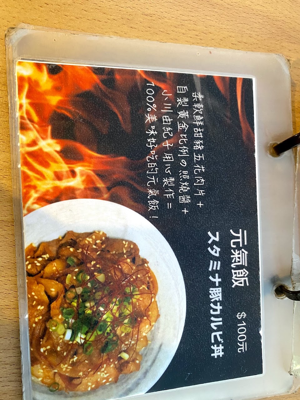 元氣丼超好吃,是薑汁燒肉類型,驚艷!炸雞咖哩的炸雞炸好好,咖哩意料中好吃。烤布蕾很優秀,桌上七味粉很搭料理。