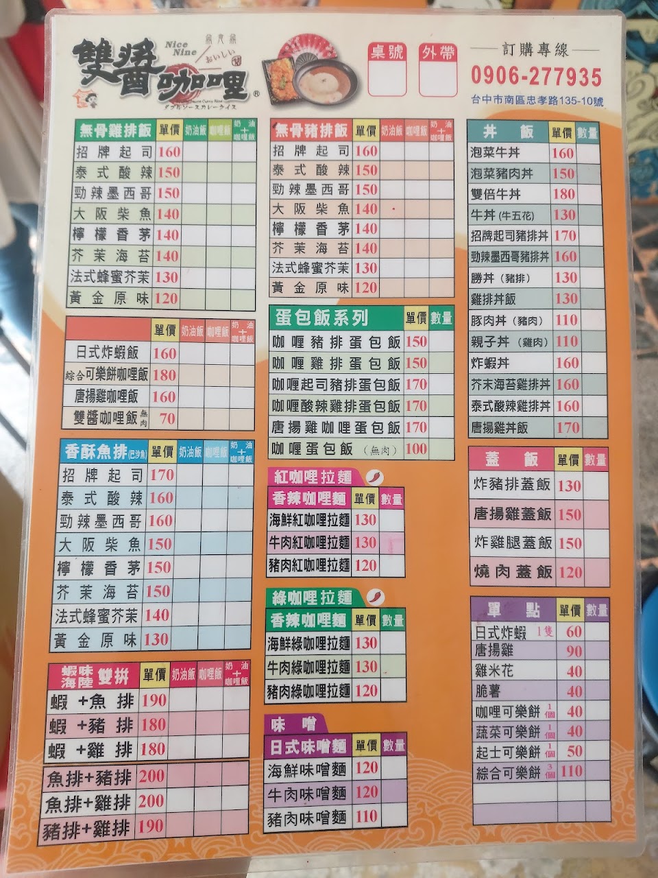 2024最新在地推薦餐廳的菜單_雙醬咖哩 忠孝興大店的菜單、圖片