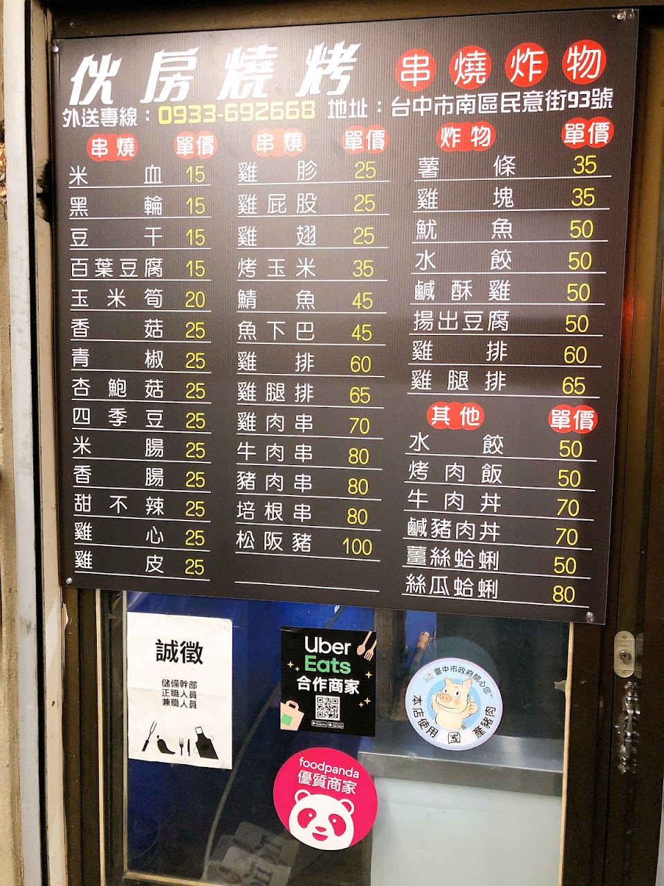 2024最新在地推薦餐廳的菜單_伙房燒烤-忠孝總店-台中美食 台中宵夜 南區美食 南區串燒 南區居酒屋 忠孝夜市美食的菜單、圖片