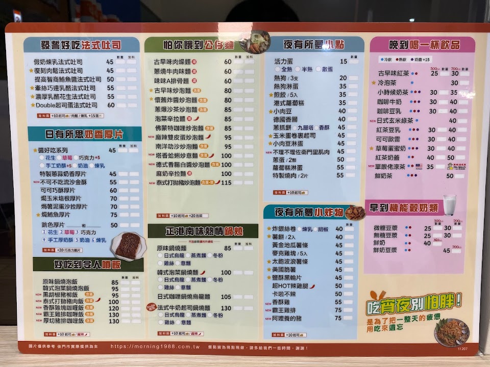 2024最新在地推薦餐廳的菜單_早到晚到文心店|南區宵夜|炒泡麵|三明治|漢堡|咖喱飯|鍋燒麵|吐司厚片|炸物|小點心的菜單、圖片