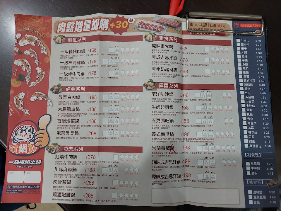 2024最新在地推薦餐廳的菜單_一級棒讚火鍋忠孝店的菜單、圖片