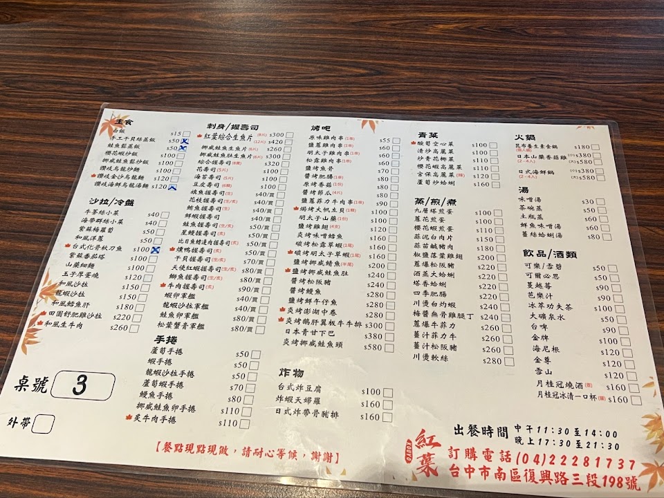 紅葉和漢精緻料理(八月份店休為8/30最後一個星期三,如有變動另行公告,感謝您)