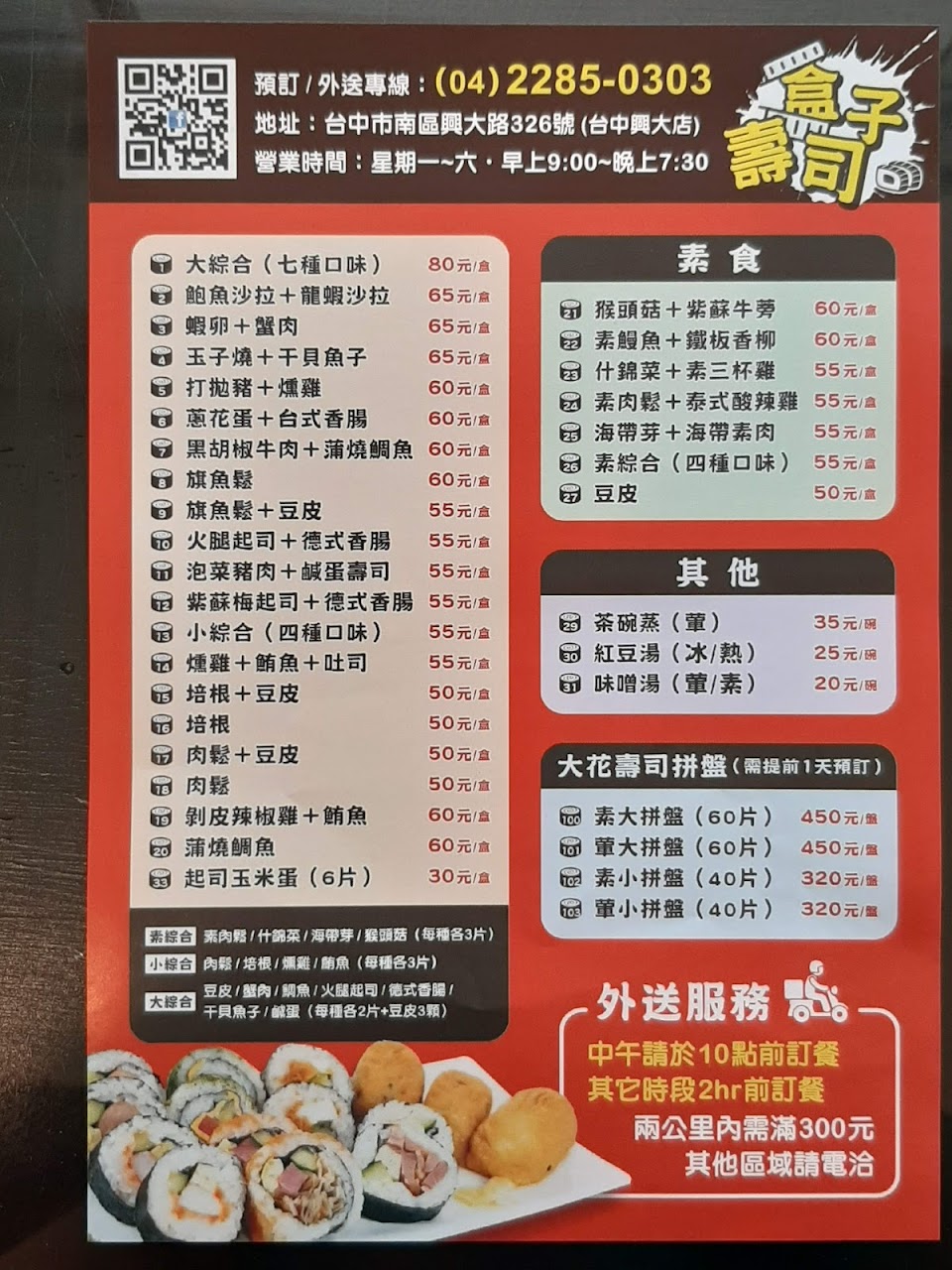 2024最新在地推薦餐廳的菜單_盒子壽司(興大店)的菜單、圖片