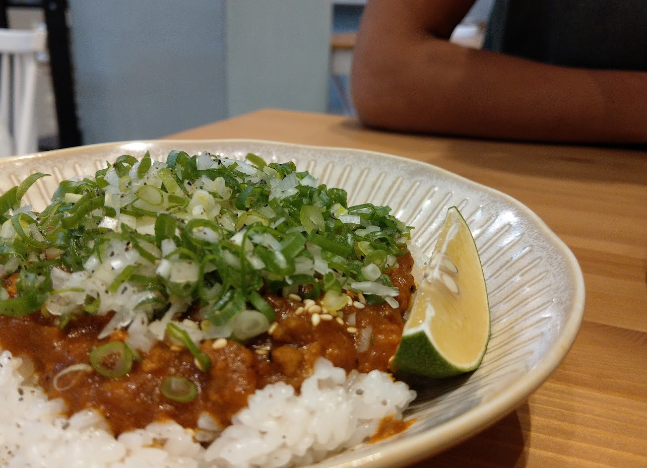店家態度和善,餐點精緻,豬油拌飯味道飽足,湯品清淡好喝,沙爹配上時蔬味道搭配,店內餐具、家具和佈置舒適友善,但是空間小位置不多