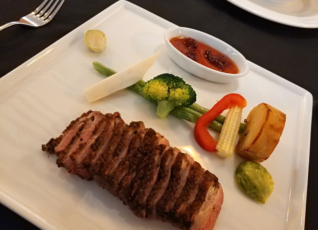 中秋節的饗宴,餐飲很地道,點了烤羔羊排、油封鴨腿、伊比利豬、牛排等三道主菜,伊比利豬的料理方式很驚豔,外皮類似醃過的鹹豬肉口感,肉卻是鮮嫩無比,。開味菜、前菜、沙拉、蕃茄濃湯,份量十足。搭配自備的紅酒佐餐,完美!