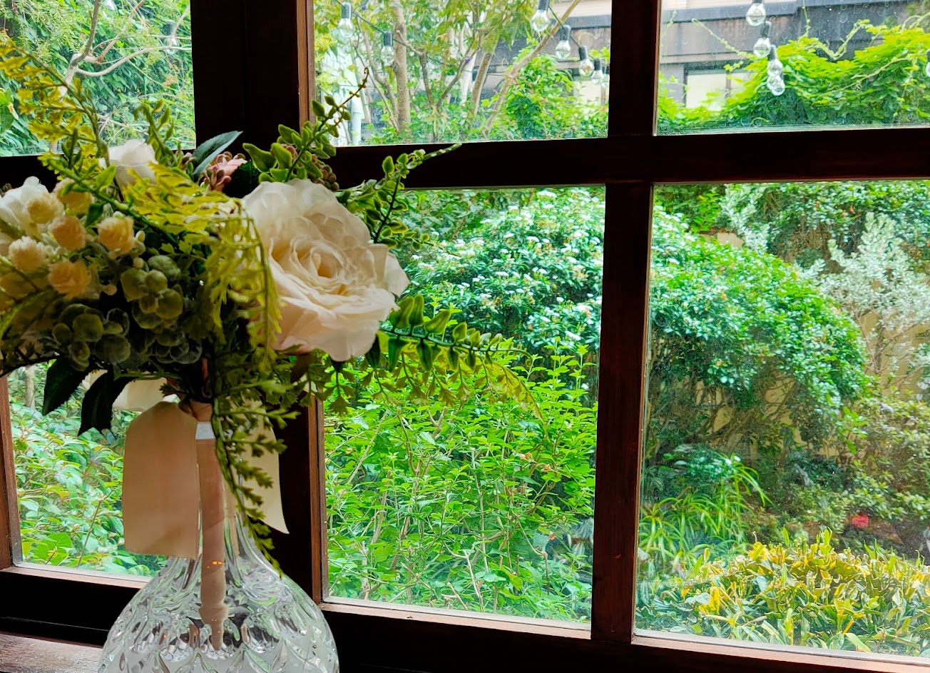 隱藏於巷弄中的唯美餐廳,前院種植著許多綠色植物,戶外放置一組桌椅,晚上點亮著燈泡,格外氣氛,裡面充滿復古歐式裝潢與擺件;靠窗的兩人座位加上花藝佈置(費用$3xxx)顯得格外浪漫,雖然花藝佈置僅價格略高,但至少用餐完畢,可以將整組花藝帶走(除了燭台、玻璃花瓶);餐前麵包沾上特製的佐醬特別入味,松露濃湯非常濃香,野菜水果優格、海鮮飯、主餐(干貝鮭魚、牛小排)各個都特別的美味,餐後當日甜點特別的擺設慶祝結婚週年,花草茶聞起來花清香,但品嚐起來則不太令人喜愛。期待未來二訪白天不一樣的美。