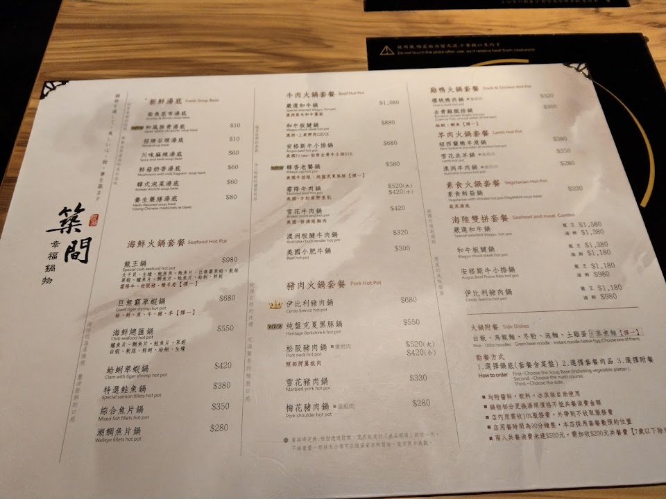 服務人員介紹菜單 很像很趕時間一樣 唸很快 拜託不是在比背菜單好嗎 客人不多但完全沒來問需要加湯嗎 卻只知道一直來收吃完的盤子 抽風設計差 吃完全身火鍋味 肉片新鮮但其他火鍋料 實在不值得花那個價位吃 差不多價位寧願選輕井澤