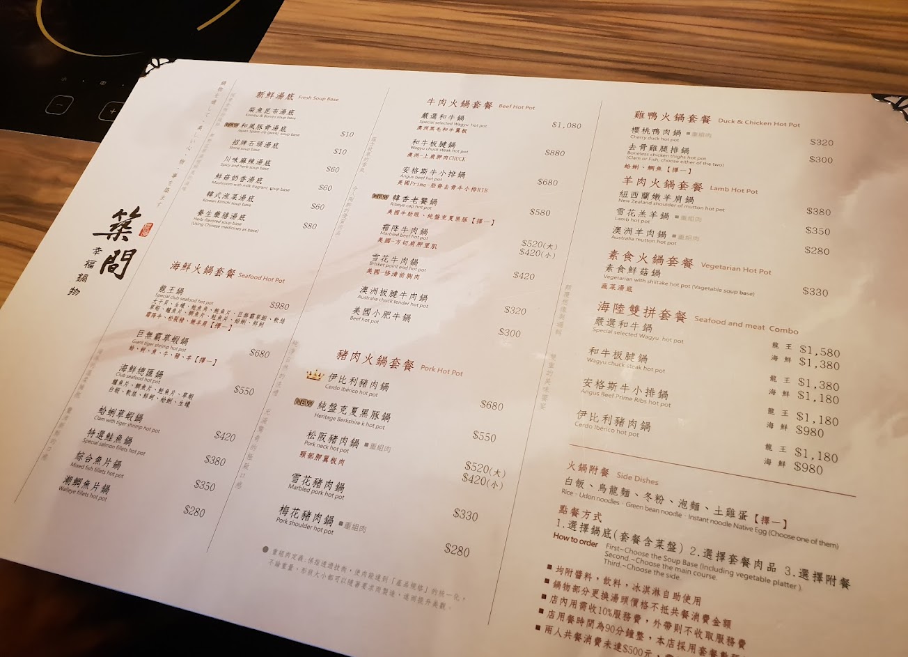 點餐需點湯底、主餐和附餐~