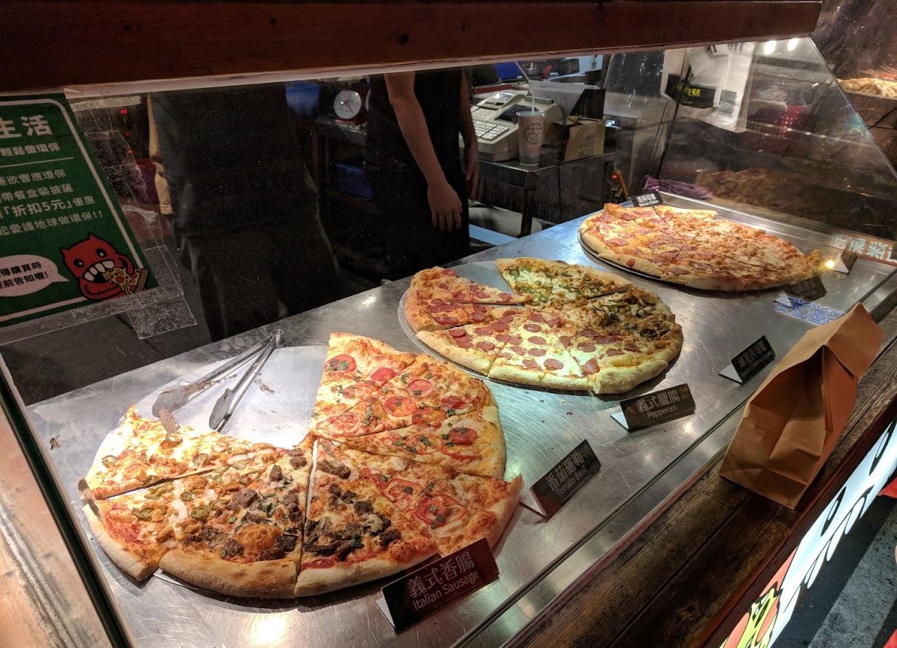 便宜的披薩,有多種口味,也提供單片購買,但是皮稍微厚乾,三片就是略飽略膩了