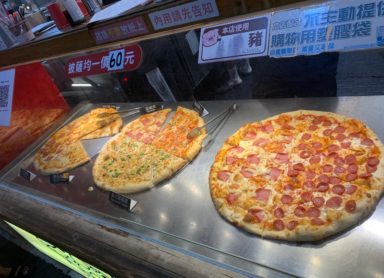 每個口味都好吃,是薄片的披薩。每次來夜市都會買內用環境乾淨