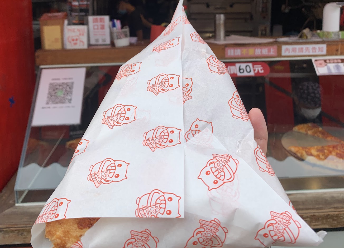來忠孝夜市最常買的東西~怪獸披薩!!今天吃培根蛋~~