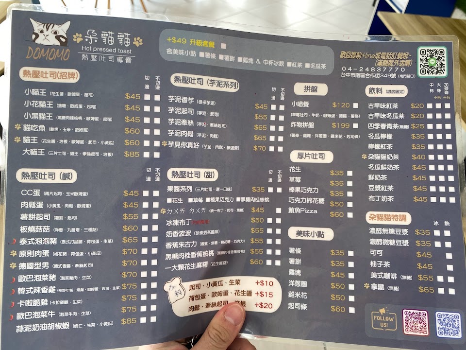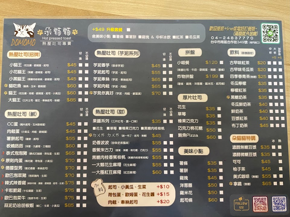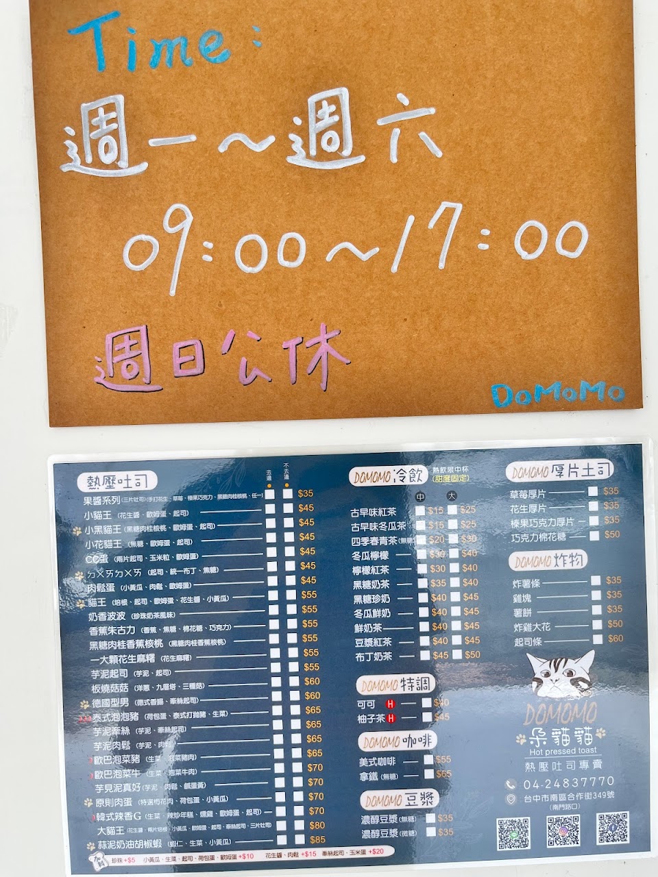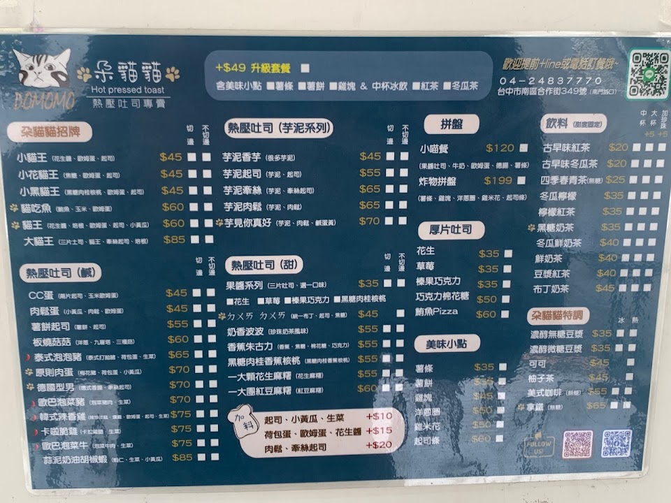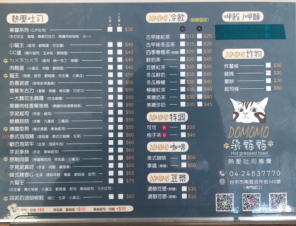 2024最新在地推薦餐廳的菜單_DOMOMO朶貓貓熱壓吐司專賣店的菜單、圖片