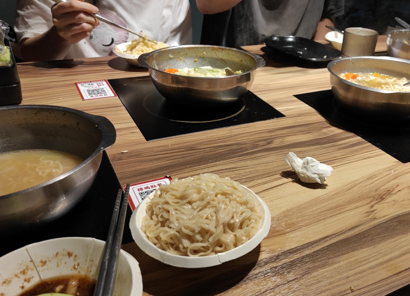今天來中興大學走走就再來用餐一次,才發現原來品項沒有很多有點可惜,然後服務員有點糊塗喔,我有點海鮮拼盤卻沒有做,還要去跟櫃台提醒。不過,這邊的火鍋料以及蔬菜都是吃到飽的,除了白飯之外還提供炒泡麵跟粥(上次來是炒飯)也都是吃到飽的,這點我很喜歡,這也是吸引我再來消費的原因。不過今天店員不斷小聲的討論客人是否已經用餐完畢了,設身處地的想想確實不太好判斷客人是用餐完畢離開或只是去上洗手間而已,如果這個問題能得到排解應該能給店員減輕不少負擔,客人也不用擔心上個廁所回來就被收光(今天中途去上洗手間就有點擔心回來就被收光)。