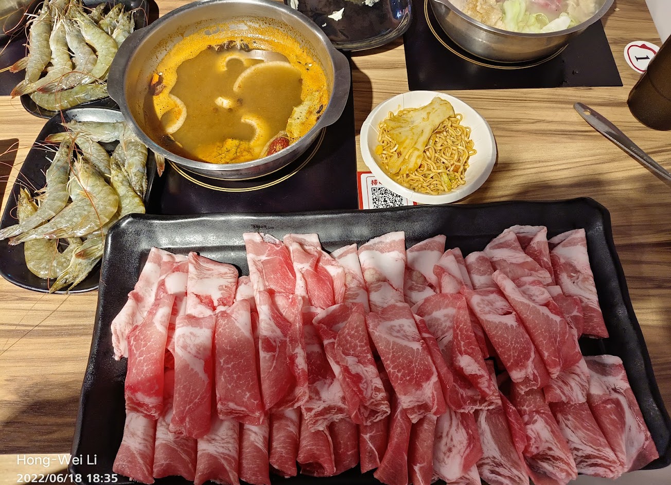 肉片也普通,店家的豬五花和梅花都非常瘦,個人其實很喜歡瘦肉,但他們家的肉片瘦到火轉稍微大吃起來就有點澀味了(後來只好都調最小火慢煮),以至於就算有大份量肉盤,吃起來完全沒有爽感。