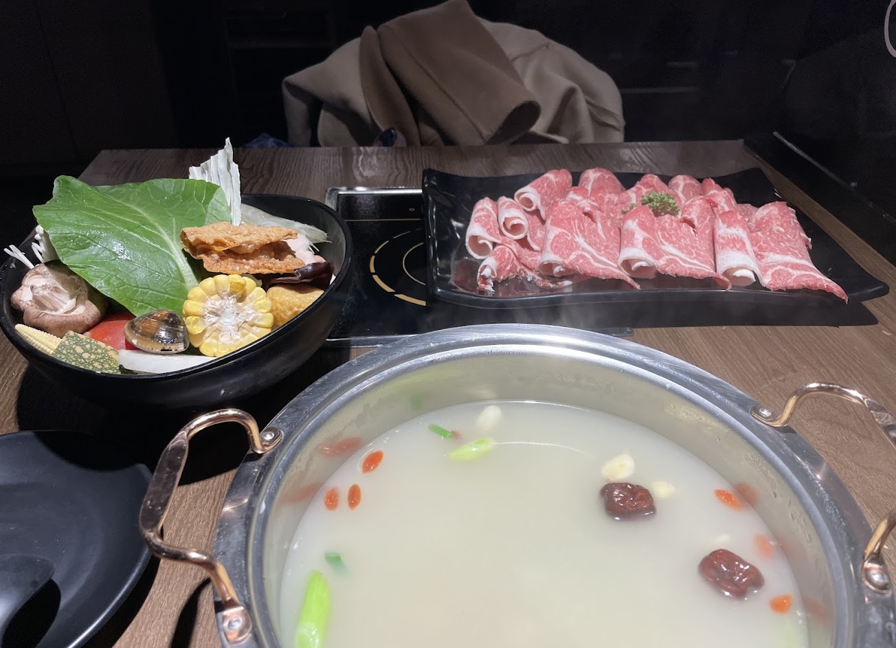 昆布大骨湯頭清爽 肉盤有誠意 附餐提供台北南門市場金峰滷肉飯佐越光米飯 滿額再贈哈根達斯 不同於一般個人涮涮鍋的精緻體驗。
