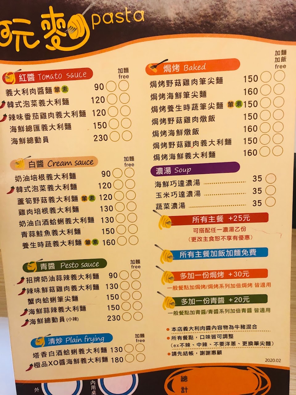 2024最新在地推薦餐廳的菜單_玩麵Pasta學府店的菜單、圖片